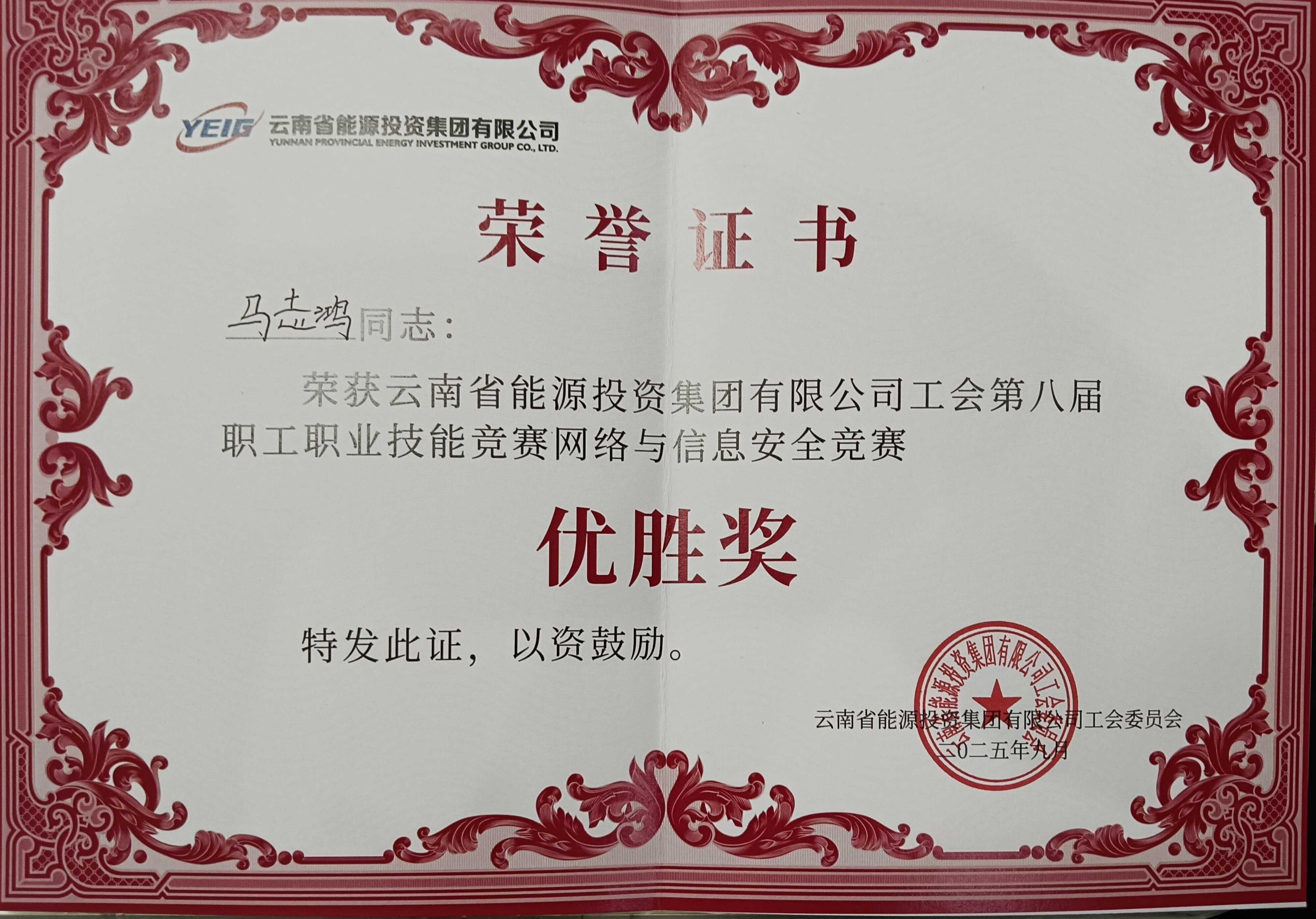 在集团职工职业技能竞赛网络与信息安全员竞赛中,公司选派的职工凭借扎实技能和过硬素质积极参赛,马志鸿同志表现优异,荣获“1xbet中文 第八届网络与信息安全职业(工种)技术能手”称号,展现了公司网络安全人才培养成果。其他同志也积累了宝贵经验,为公司网络安全防护贡献了力量。