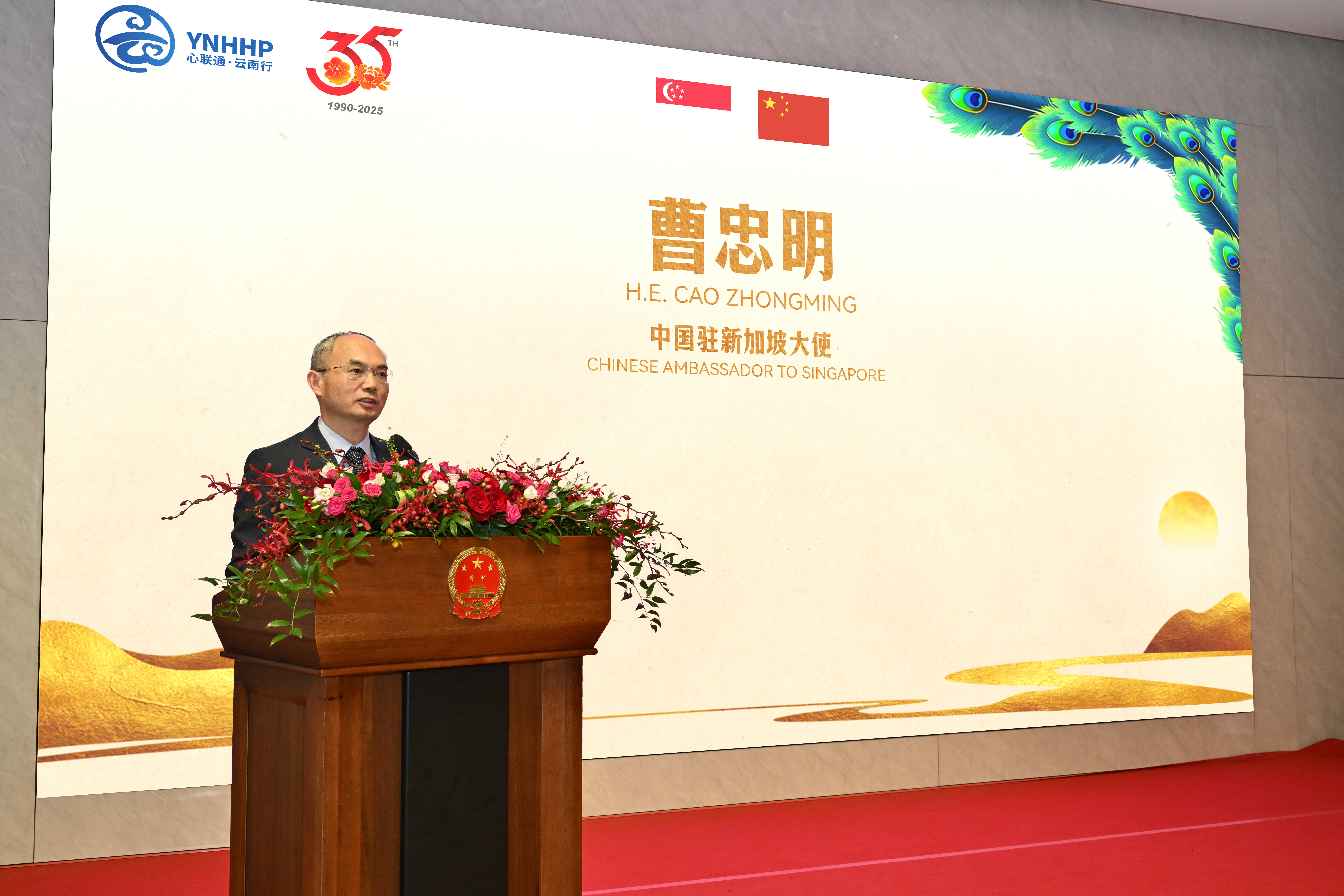 中国驻新加坡大使曹忠明、云南省对外友好协会二级巡视员杨晟出席活动并致辞。曹忠明大使在致辞中表示,今年是中国人民抗日战争暨世界反法西斯战争胜利80周年,重温南侨机工的历史,缅怀先辈们的牺牲与奉献,就是要捍卫历史真相,理直气壮地反对任何淡化、歪曲甚至美化侵略历史的错误言行,秉持正确、客观、全面的二战史观,警示当下,启迪未来,教育子孙后代珍惜先辈们用鲜血和生命换来的和平。