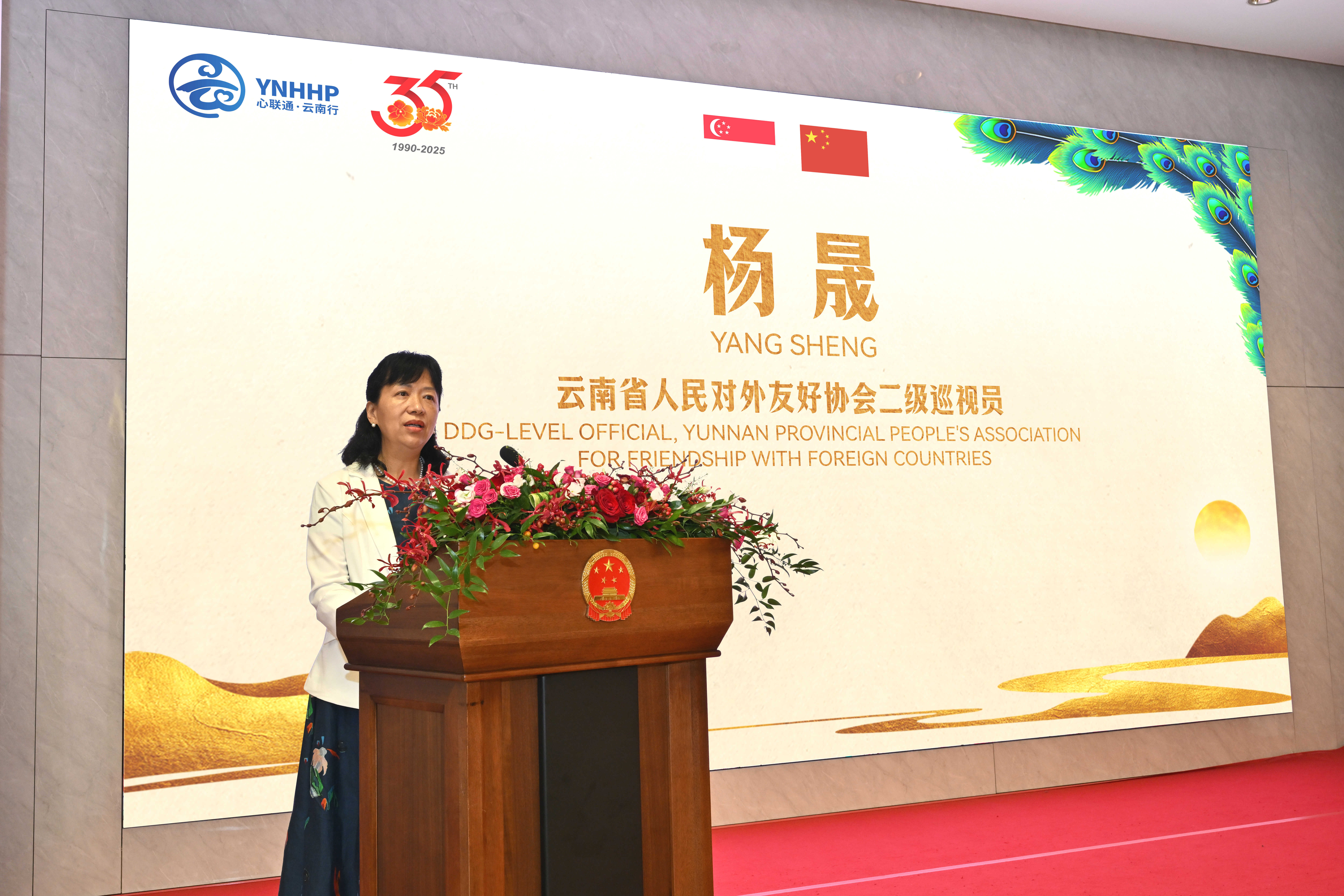 杨晟巡视员在致辞中介绍了云南省省情、云南省人民对外友好协会和“心联通 云南行”项目情况,并表示作为对外友好协会,肩负着珍爱、维护和平的责任。通过推开时光的闸门,致敬历史中不应被忘记的群体,铭记他们的英勇事迹,壮大维护和平的力量;并以纪念为号角,表达我们铭记历史,守卫和平的愿望。八十年风云激荡,昔日的抗战生命线已蜕变为中国面向南亚东南亚的开放前沿和黄金枢纽,杨晟巡视员在致辞中诚挚邀请嘉宾们到彩云之南体验“有一种叫云南的生活”,共享“有一种叫云南的机遇”。