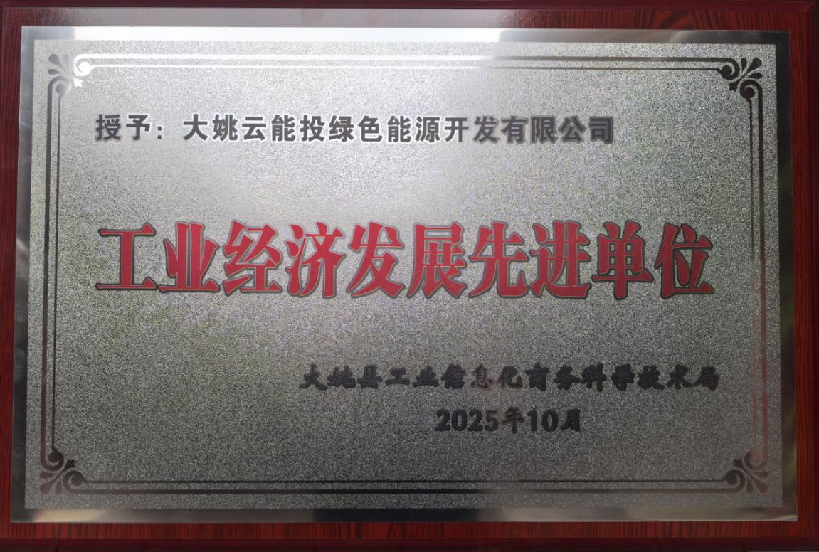 11月4日,大姚县工业信息化商务科学技术局印发《关于授予2025年度“工业经济发展先进单位”称号的通知》,绿能集团所属大姚公司被授予“工业经济发展先进单位”称号。