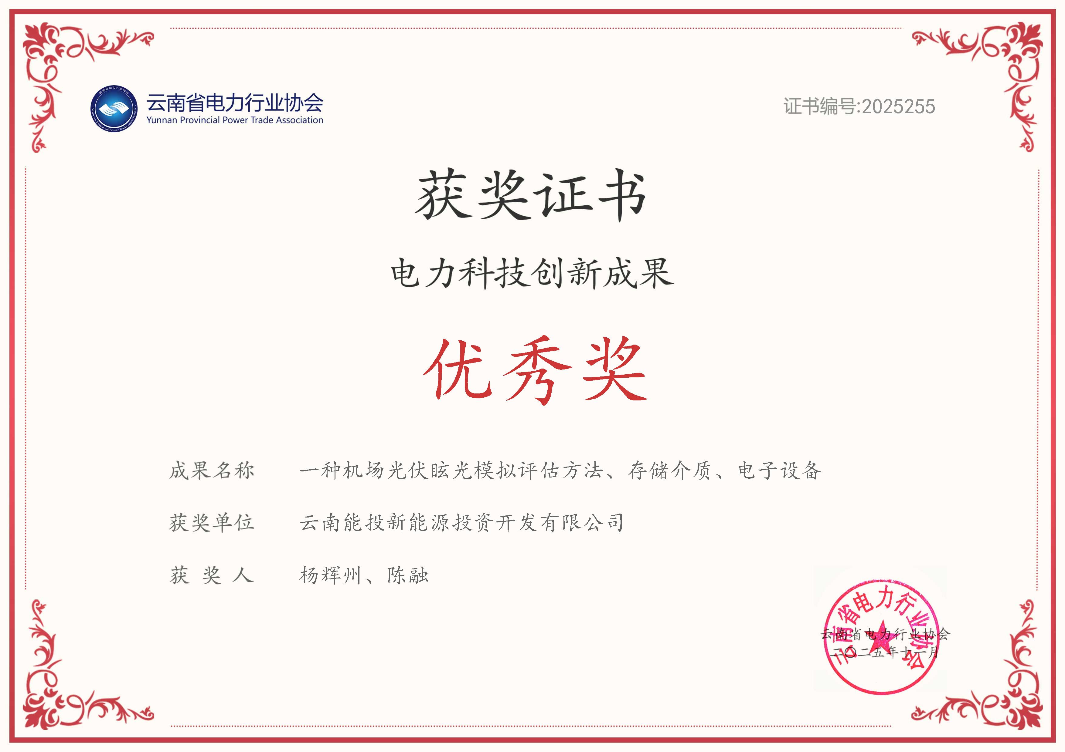 近日,绿能集团所属新能源公司的创新成果《一种机场光伏眩光模拟评估方法、存储介质、电子设备》,荣获云南省电力行业协会电力科技创新成果优秀奖。体现了电力行业对机场光伏技术创新与实践应用的高度认可,为机场光伏领域的安全推广与技术升级注入强劲动力。