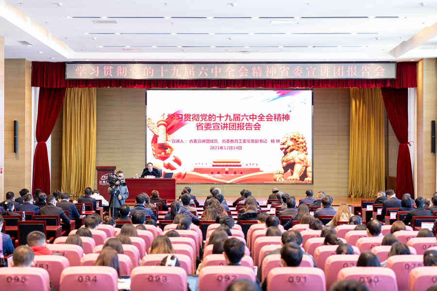 本网讯(通讯员 李桂芳 杨思航 报道)12月14日,学习贯彻党的十九届六中全会精神省委宣讲团报告会在集团举行,省委宣讲团成员、省委教育工委常务副书记杨林同志作宣讲报告。