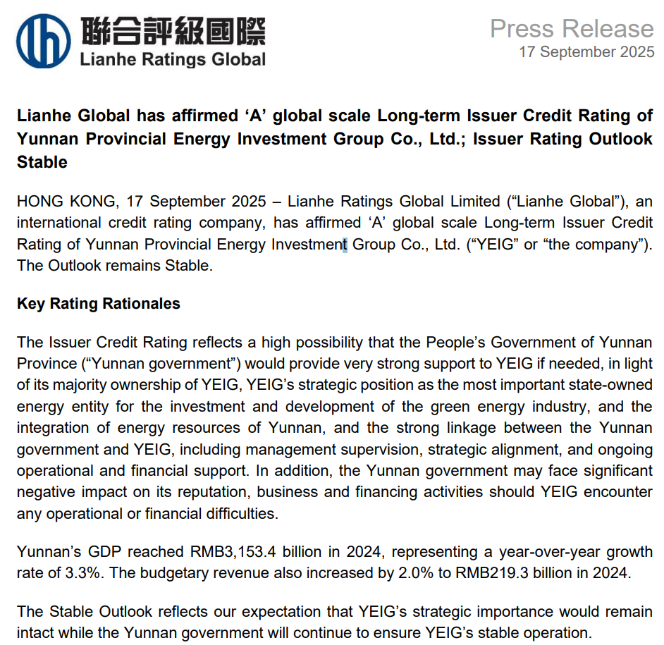 集团近年来新能源装机规模快速增长、融资成本大幅下降、融资结构有效改善、煤炭产销实现“逆势增长”以及云南省政府持续稳定的支持是获得本次评级结果的关键因素。