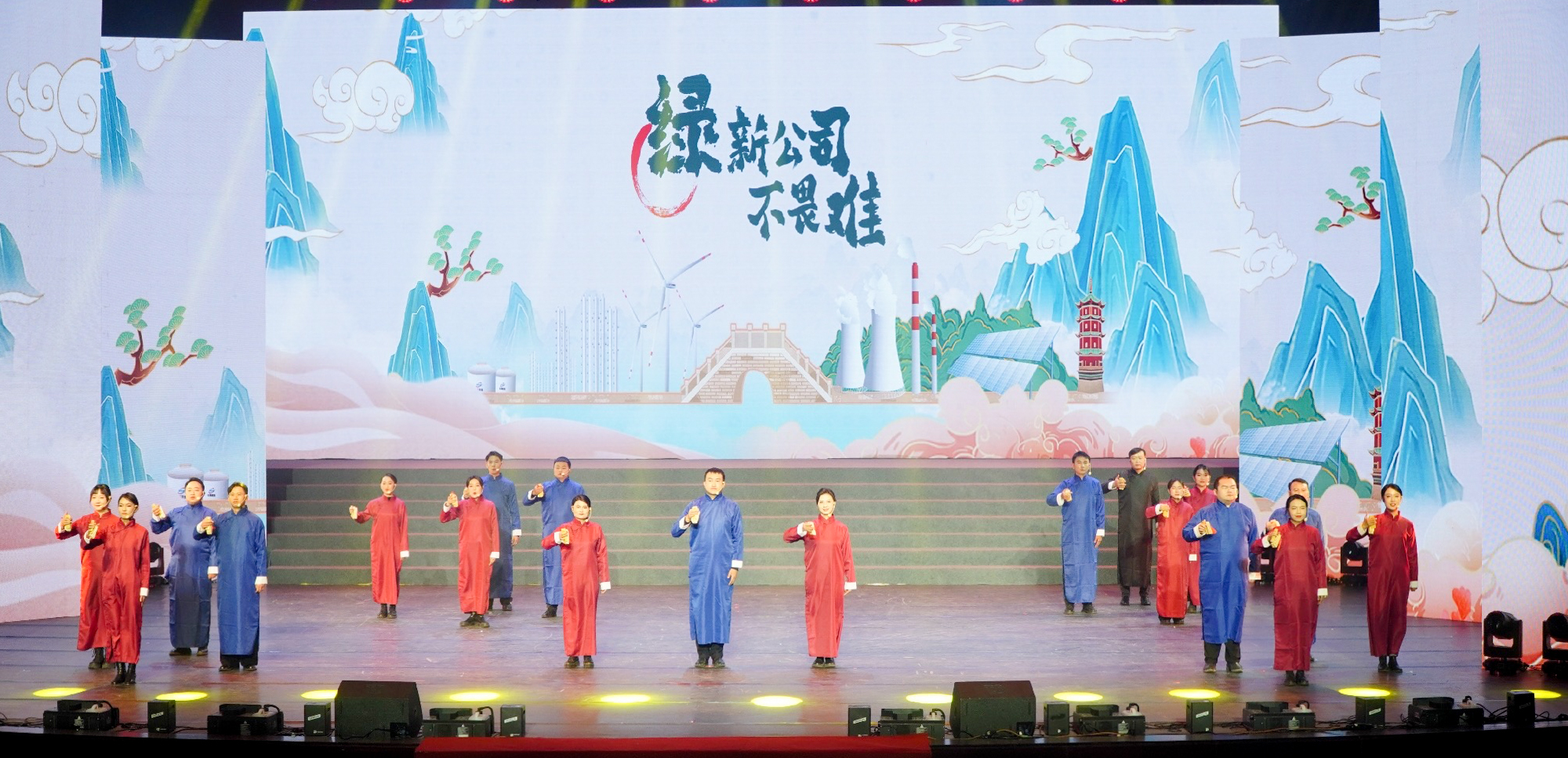 歌曲联唱《未来狂想曲》融入科技元素,通过人屏互动,展现能投员工“你中有我、我中有你”相互协同、并肩同行的精神风貌。