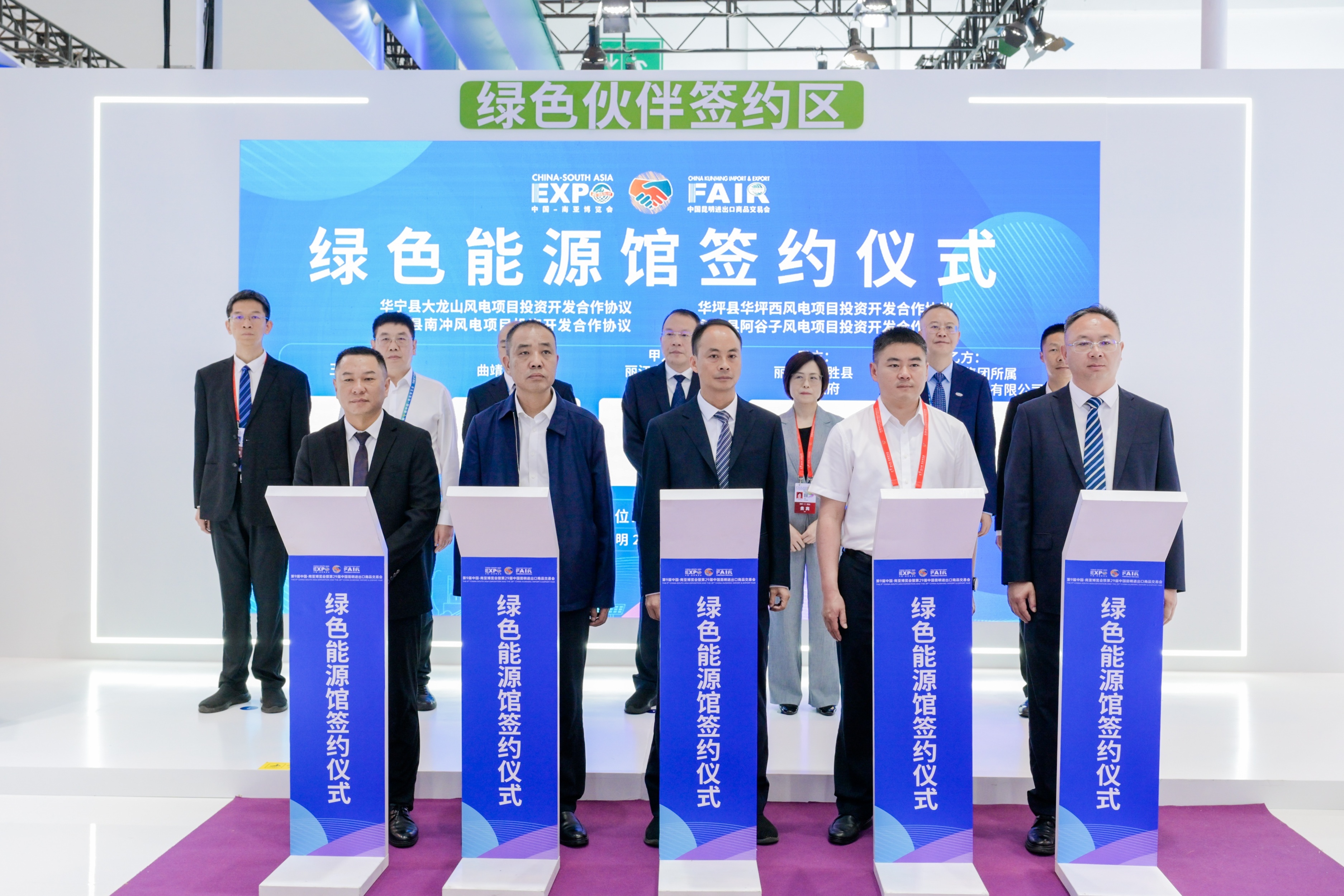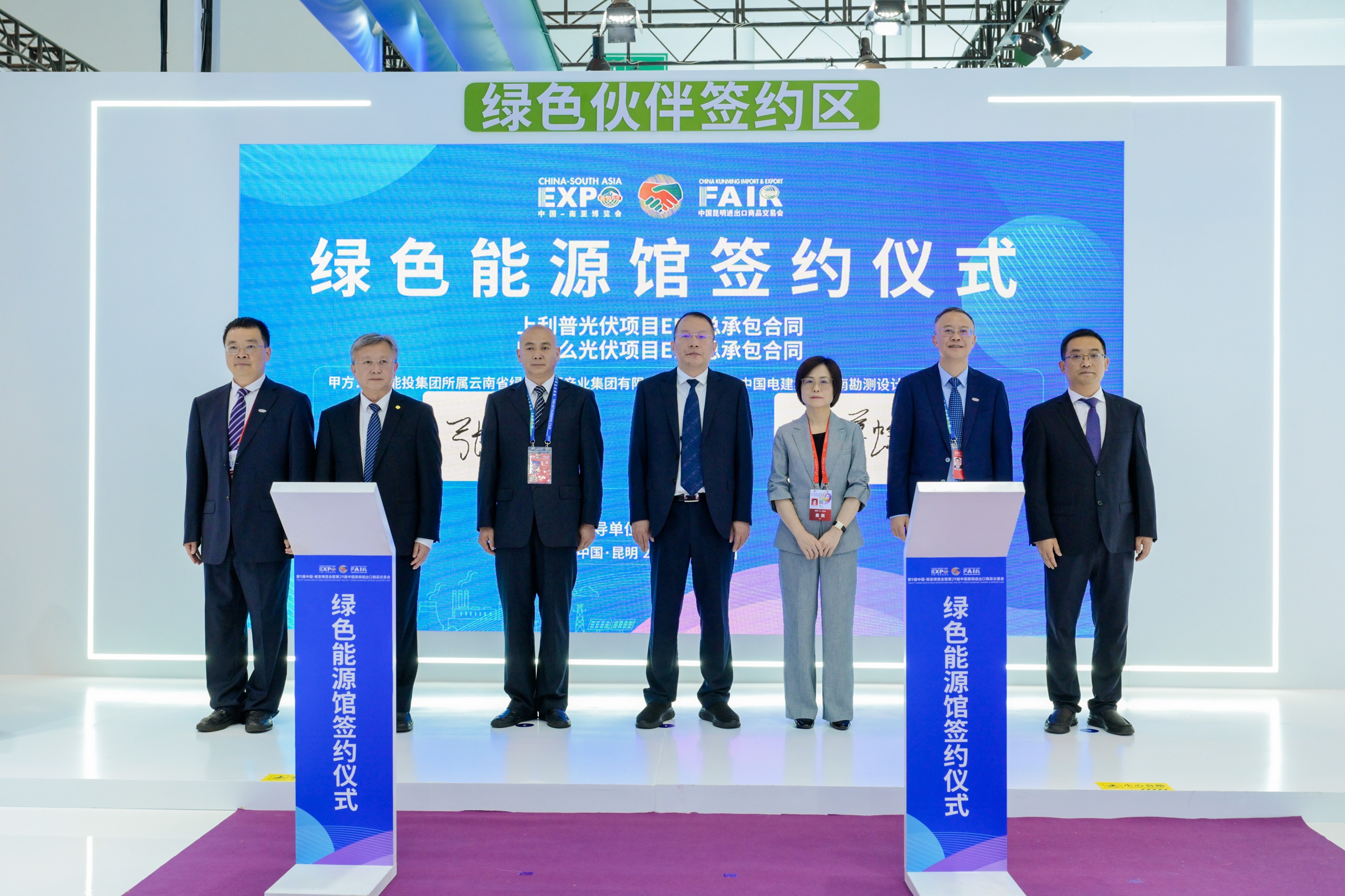 6月20日,第九届南博会绿色能源馆(2号馆)举行重点项目签约仪式,1xbet中文 作为核心签约企业,成功签署8项重大协议,总金额超28亿元人民币。云南省副省长刘勇,省能源局党组书记、局长陈杰,省能源局总工程师付晖见证签约,1xbet中文 党委书记、董事长胡均全程见证签约活动。