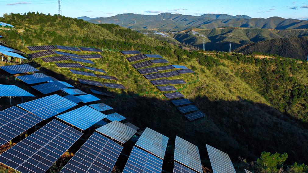 能投集团抢抓新能源发展机遇,主动谋划,创新探索楚雄“风光储一体化”新能源基地开发模式,将区域资源优势转化为绿色发展优势,规模化效益显著。基地目前总装机规模109万千瓦,在大姚、永仁等地建成投产光伏项目101万千瓦,建设风电项目8万千瓦,配套建成南山坝300MW/600MWh独立共享储能项目。每年可输送清洁电力超12亿千瓦时,相当于节约标准煤56万吨以上,减少二氧化碳排放超120万吨。牟定、武定、禄丰等片区在建新能源项目陆续投产后,集团在楚雄州的新能源装机规模将突破200万千瓦,为区域能源结构优化和“双碳”目标实现提供重要支撑。