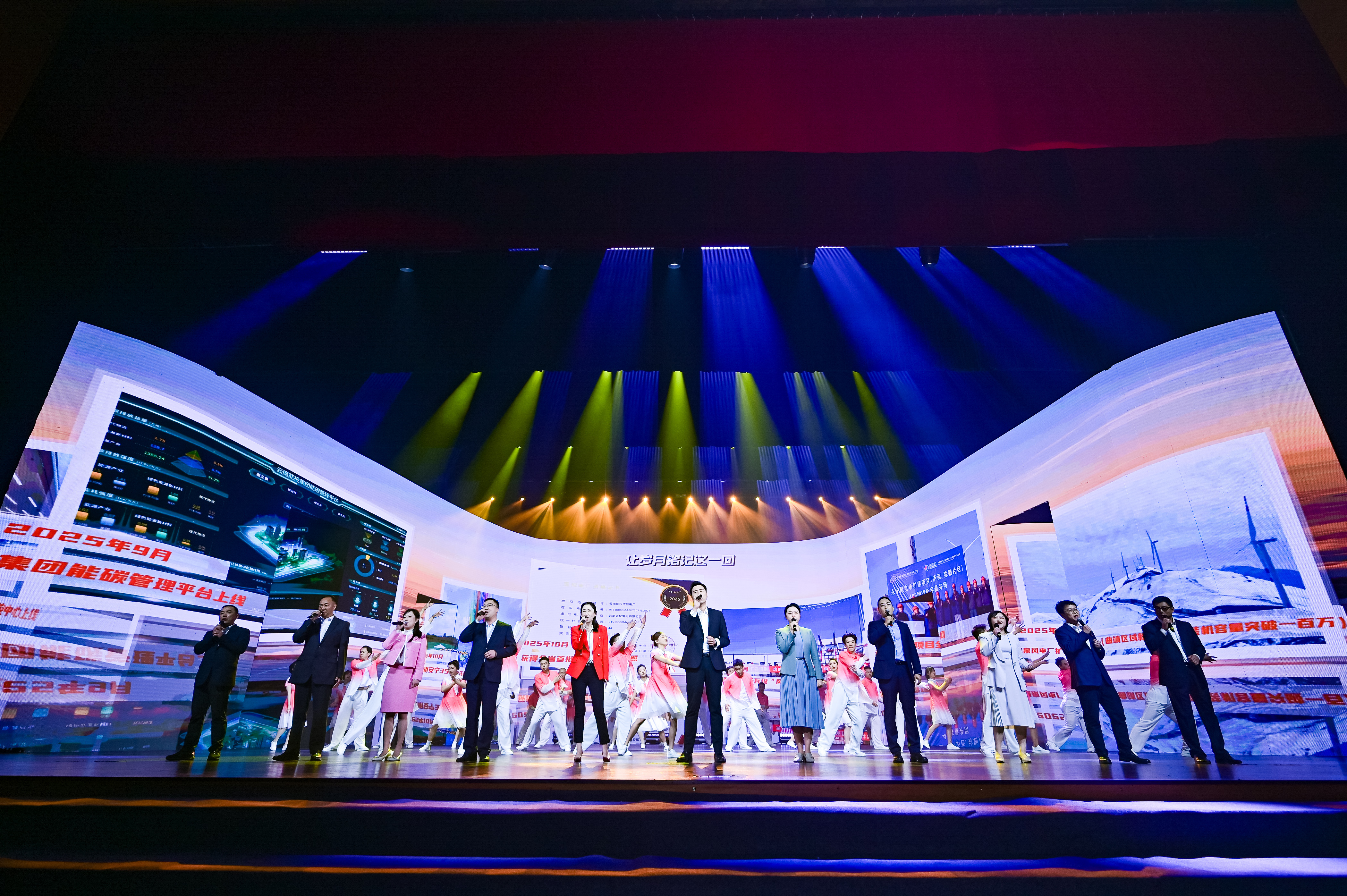 活动尾声,全体职工演员与台下观众共同唱响大合唱《再一次出发》,歌声铿锵有力,气势恢宏,共同展望“十五五”崭新征程,表达了云能人联心携手、全力奔赴未来的坚定信心。