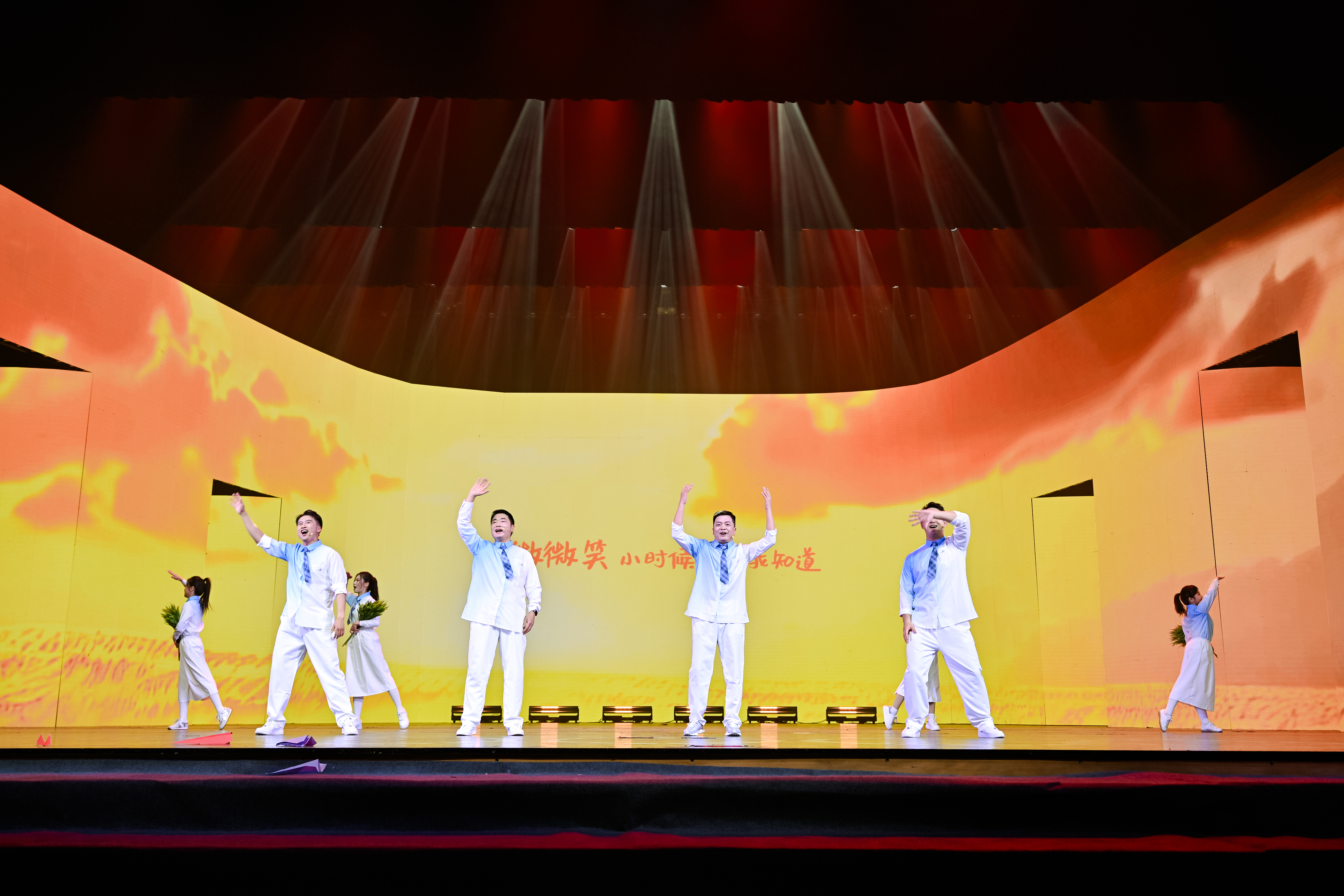 情景歌舞《远方,我们在》讲述了集团在境外攻坚克难,直面自然灾害挑战,打造“精而优、小而美”能源项目的生动实践。