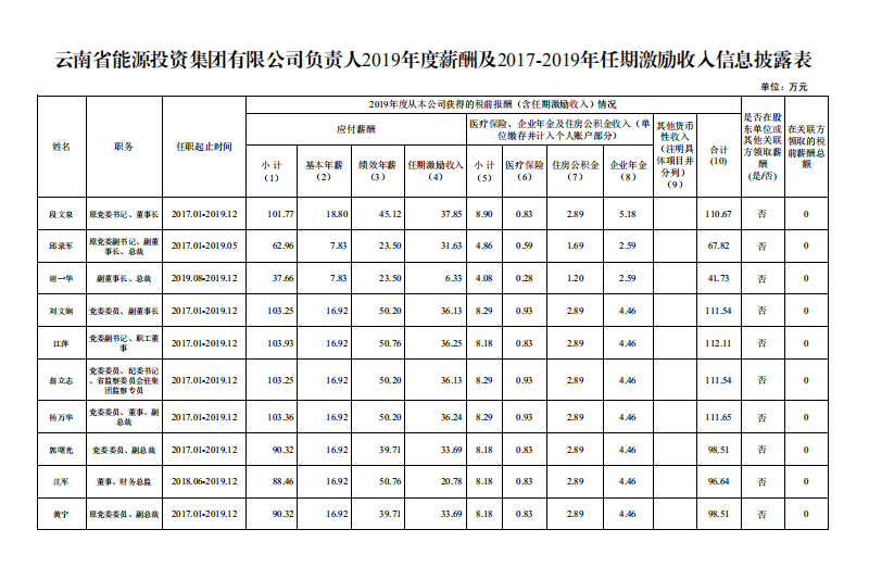 1xbet中文 负责人2019年度薪酬及2017-2019年任期激励收入信息披露表