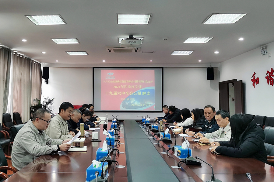 本网讯(通讯员 刘俊芸 报道)11月23日,威信公司管理部门党支部开展题为《十九届六中全会公报》解读专题党课,由公司党委委员、副总经理黄武凯讲授,管理部门党支部全体党员及入党积极分子参加。