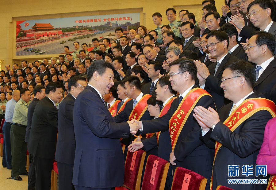 5月13日,党和国家领导人习近平、李克强、刘云山、张高丽等在北京会见第七次全国人民防空会议代表。新华社记者 李刚 摄